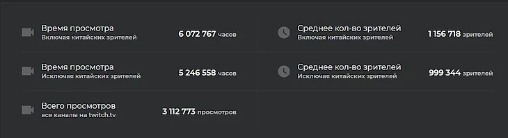Для сравнения – у Супермейджора по Dota 2 было одновременно всего 137 тысяч зрителей, на стриме ECS Season 5 Finals по CS:GO – почти 50 тысяч, а MSI 2018, последний крупный турнир по LoL, смотрели около 345 тысяч зрителей.