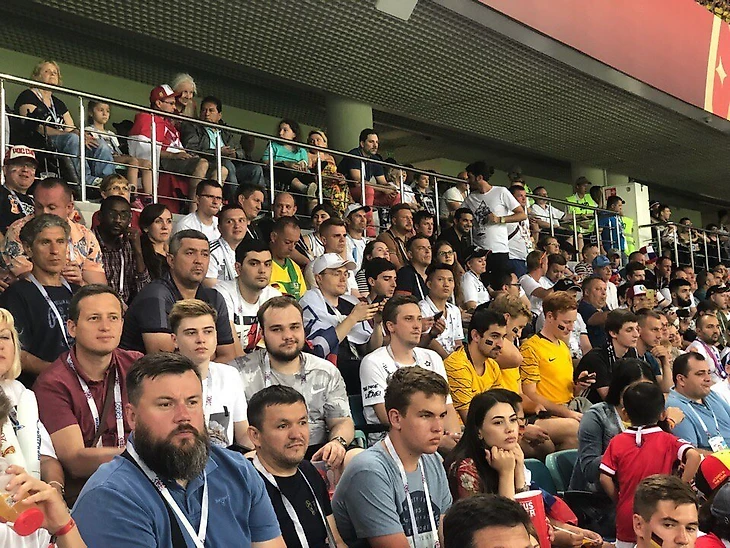 Игроки Virtus.pro Владимир Миненко, Роман Кушнарев и Алексей Березин посетили матч группового этапа чемпионата мира по футболу – Германия-Швеция.
