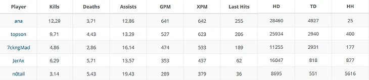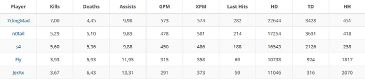 Если раньше между второй и третьей позициями практически не было разницы, и, по сути, n0tail и s4 попросту дублировали друг друга, то сейчас у OG есть полноценный второй кор. При этом, разница в параметре “урон по героям” между Топсоном и Нотейлом на второй позиции просто колоссальная: почти 26 тысяч против 17.