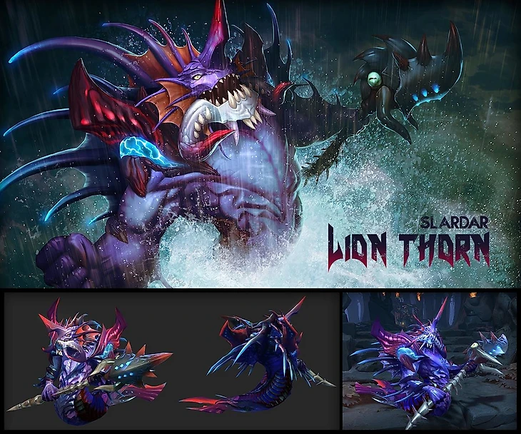 Более того, Kunkka рисовал и для мастерской, участвовал в отборе сетов на The International’s Collector’s Cache 2017. К сожалению, сет на Слардара не вошел в состав сундука, так как в том же году владельцы Боевого Пропуска могли получить другой сет на этого же героя.