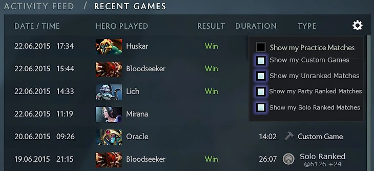 Фильтр игр должен включать в себя больше опций, да и почему бы снова не показывать изменение MMR в каждой игре?