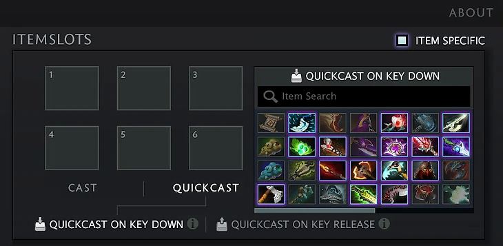Конечно, эту же функцию стоит добавить и для предметов. Более того, в зависимости от артефакта игроки по-разному хотят прожимать его – как можно быстрее (Hex) или как можно точнее (Veil of Discord, Boots of Travel). Поэтому было бы неплохо добавить настройку типа каста для каждого активного предмета: