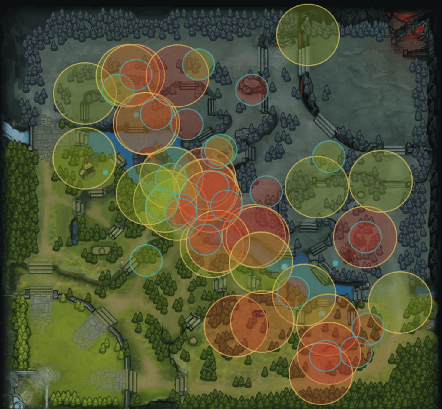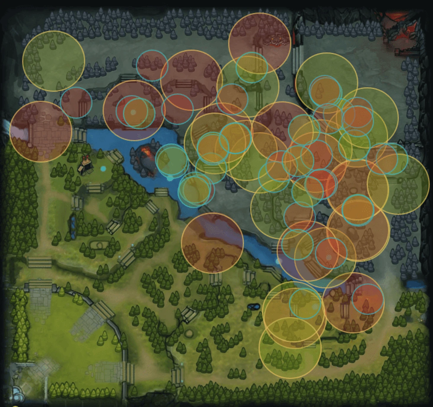 Пара вардов на своей половине, остальные сосредоточены на половине карты соперника, некоторые из них прямо у него на базе. А вот так выглядит среднестатистическая карта вижена в победных играх Team Secret: