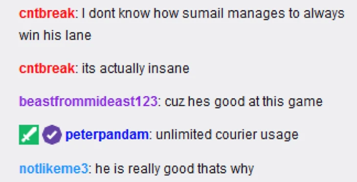 На одной из трансляций работяги обсуждали Сумаила. Зрителей поразило, как часто мидеру EG удается выигрывать свою линию.