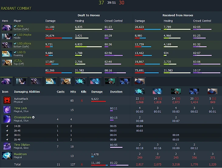 Функции инициатора по очереди берут на себя разные игроки. По большому счету, инициирует сражения в LGD кто угодно, кроме Ame. В футболе есть такое понятие – “играть на чистых мячах”. Так характеризуют игрока, чаще всего нападающего, который не утруждает себя черновой работой и предпочитает дожидаться идеального паса. Ame не любит тратить время на грамотное позиционирование и выжидать момента для инициации.