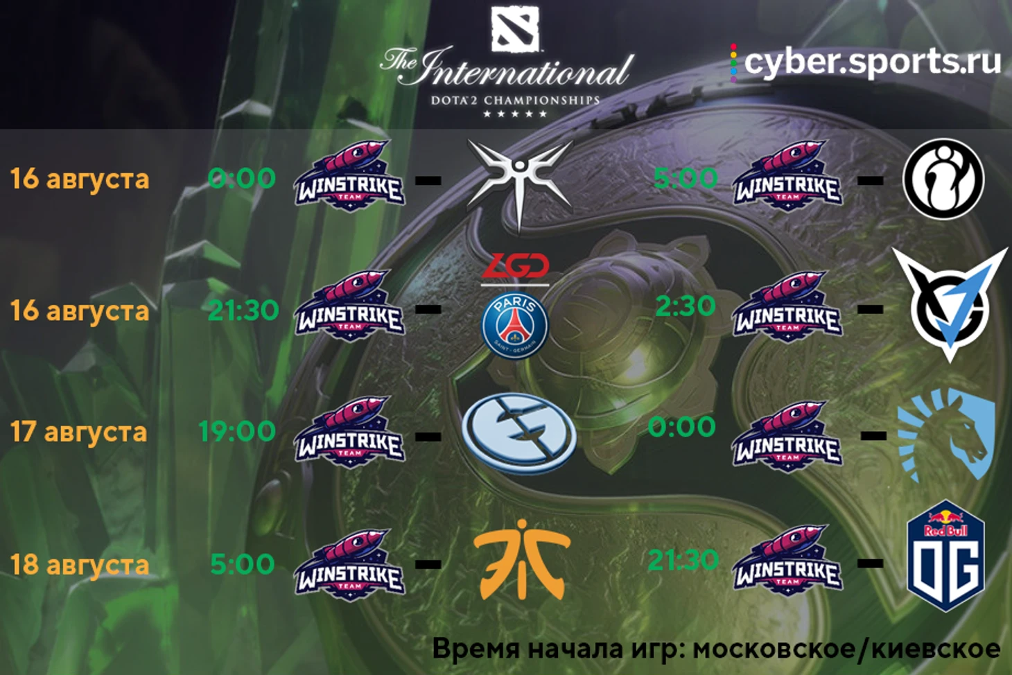 Расписание матчей Virtus.pro и Winstrike на TI8