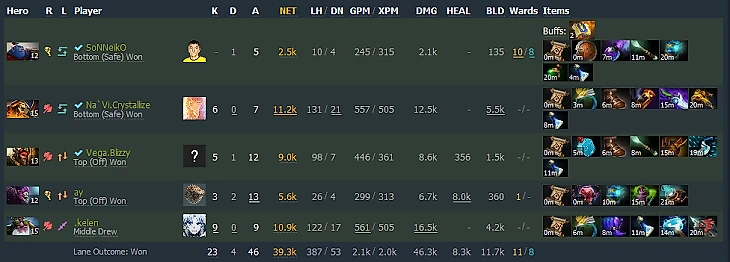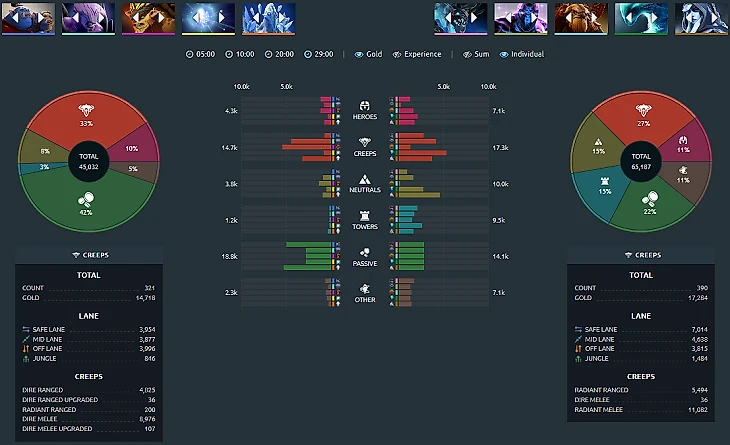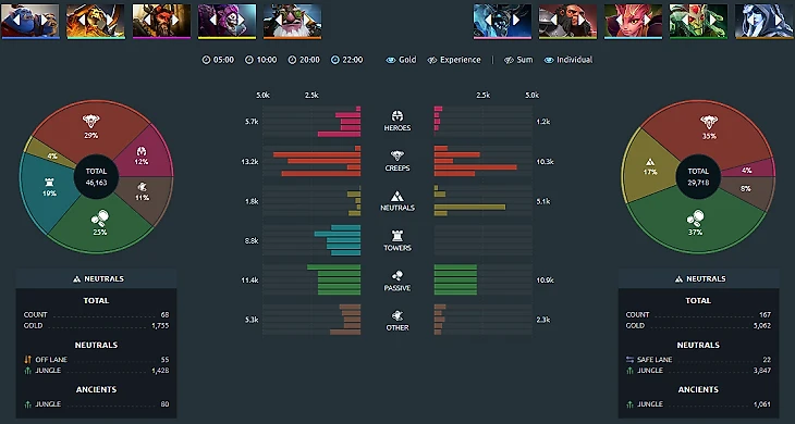 Больше 6 тысяч перефарма за счет лесных крипов, 5 тысяч за счет Рун Богатства. И это не говоря об уничтоженных вышках. Все, что могли делать Na`Vi своим пиком – это драться, но в большинстве тимфайтов сказывались проигранные линии и не самый метовый драфт.