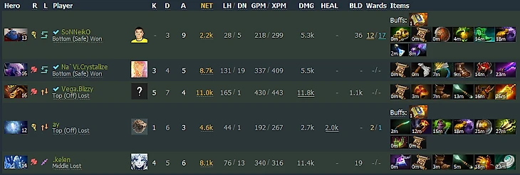 И лишь один из этих фрагов пришелся на героев 1-2 позиций, да и тот состоялся еще на стадии лайнинга. Неспособность Na`Vi отпушивать линии и явная игра вторым номером привели к тому, что большинство сражений проходило на половине карты украинской команды. А те редкие случаи, когда Na`Vi удачно для себя разменивались, не подкреплялись сносом вышек.