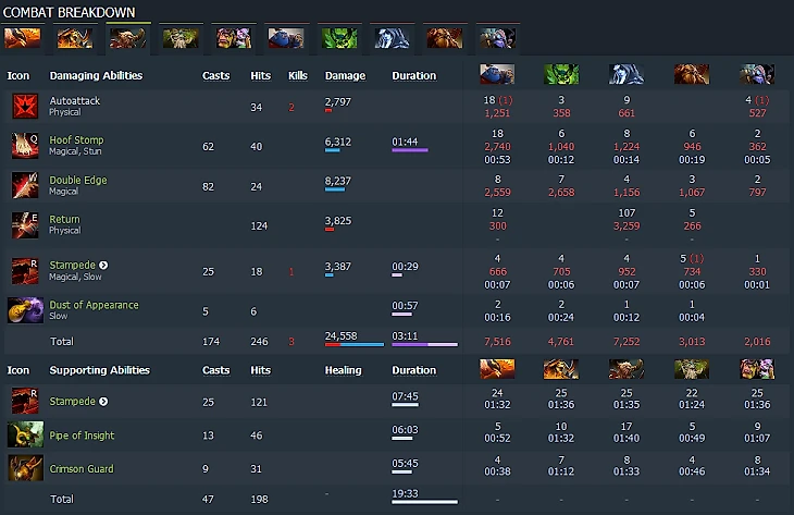 У Близзи самый низкий IMP (Individual Match Performance – почитайте, если забыли, что это такое) на карте. У него вновь возникли проблемы с попаданием станами по врагам, как и в игре на Tiny против Lithium в предыдущем раунде. На 62 каста Hoof Stomp у него всего 40 попаданий по героям.