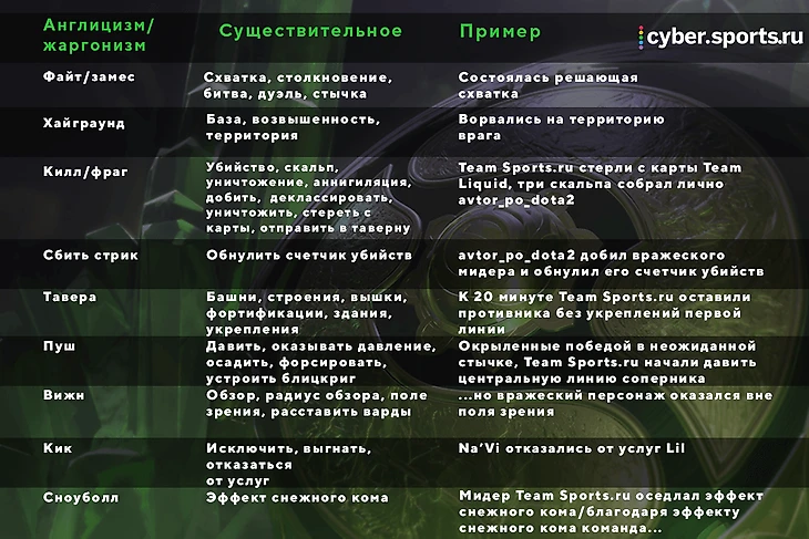 Мы решили вдохновиться примером Романа и составили дотерско-русский словарь терминов. Теперь ты можешь представить, как звучала бы Dota 2 во времена Пушкина (ну или хотя бы раннего Пелевина).