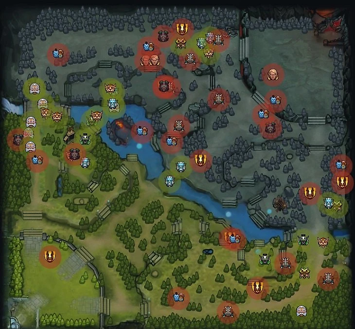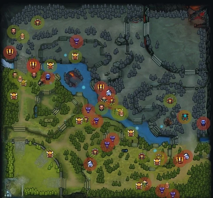 6. До 25-й минуты Virtus.pro уничтожили 1 вражескую вышку в миде и 2 на боте. Так VP обычно контролируют вражеский лес. После 25-й вектор их атак сместился на топ, в область между Святыней Radiant и Рошаном.