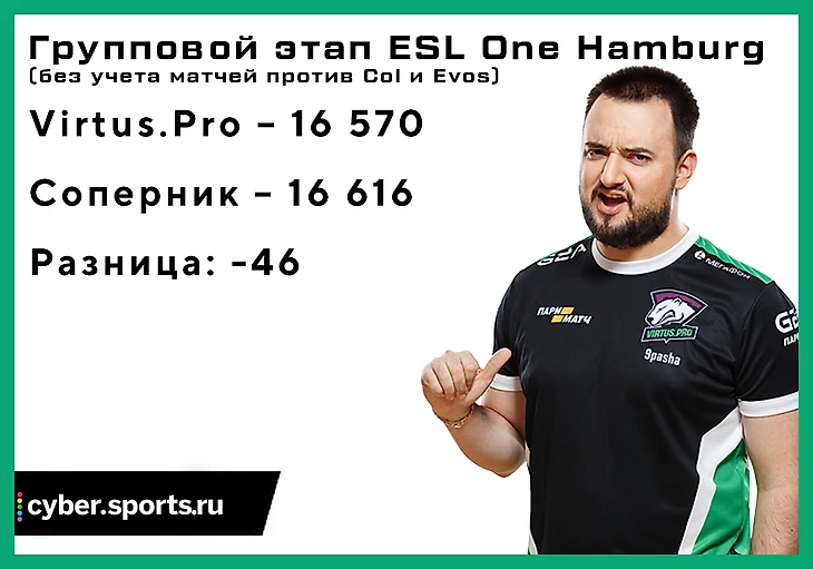 На ESL One Hamburg 2018 у VP, на первый взгляд, все не так плохо: среднее преимущество перед оппонентом после стадии лайнинга составляет почти полторы тысячи золота. Но если вынести за скобки игры против Complexity и Team Evos, то выяснится, что никакого преимущества у VP нет.