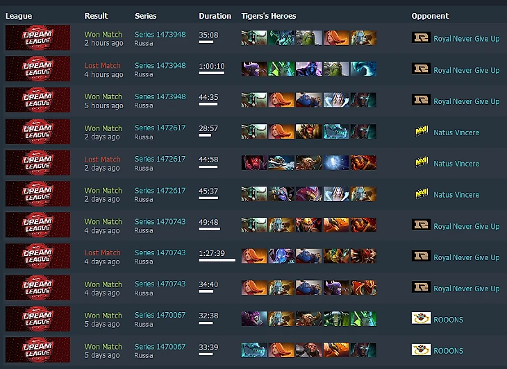 Tigers ценят героев, которые способны быстро убивать пачки крипов и толкать линии в сторону соперника. Статистика команды на Дримлиге выглядит впечатляюще.