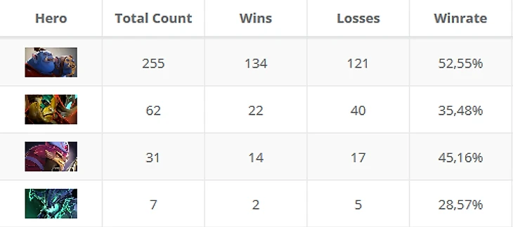 И у всех троих винрейт ниже 50%, но Tigers умудряются с ними выигрывать.