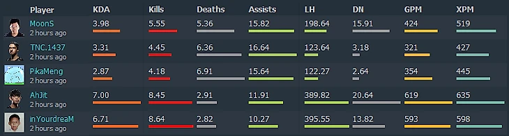 Даже у саппортов средний крипстат переваливает за 100, не говоря уже о кор-героях – Ahjit (помните, мы недавно вспоминали, как он должен был выиграть Бостонский мейджор-2016 с WG.Unity?) и inYourdreaM (он же WonderKid) добивают почти по 400 крипов в каждой игре.