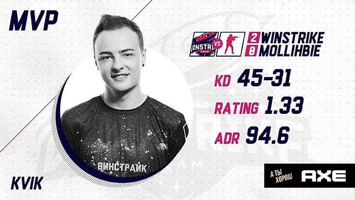 17 ноября 2018, 09:00 1 мин. Kvik получает звание MVP матча Winstrike vs. MOLLINblEWinstrike TeamАвтор2 подписатьсяKvik на Dust2 был хорош и получает заслуженное звание MVP матча😎Winstrike TeamWinstrike Org