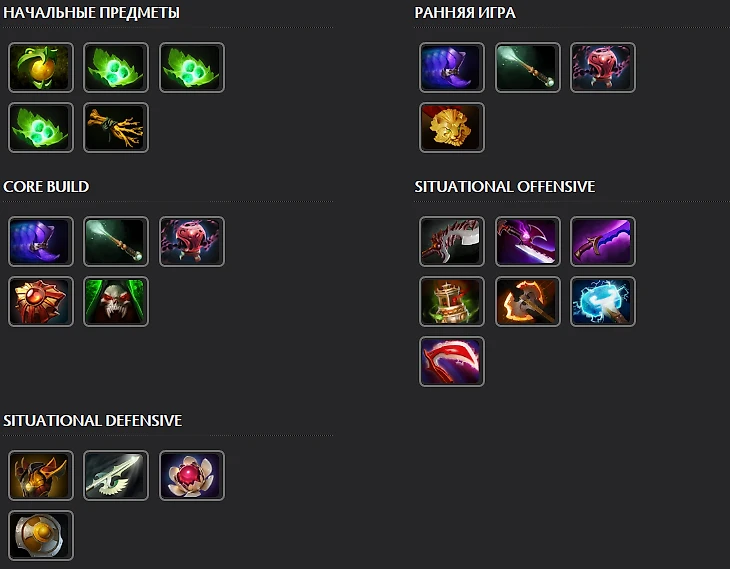 требуются другие герои с высоким физическим уроном, чтобы полностью раскрыть билд на снижение брони (единственный рабочий билд на PA-саппорта из-за низкой стоимости);