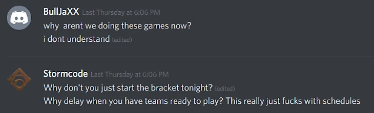Все открытые квалификации проходят в два дня – на второй день играют команды, дошедшие до 1/8 финала. Так как в Америке всего набралось 16 команд, ESL решила отменить все игры первого дня. Но для того, чтобы быть допущенными к отбору, все команды должны были зачем-то подтвердить свое присутствие. В результате игроки ждали лобби, которых просто не существовало. Просьбы игроков о переносе игр с воскресенья на субботу были проигнорированы.