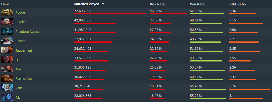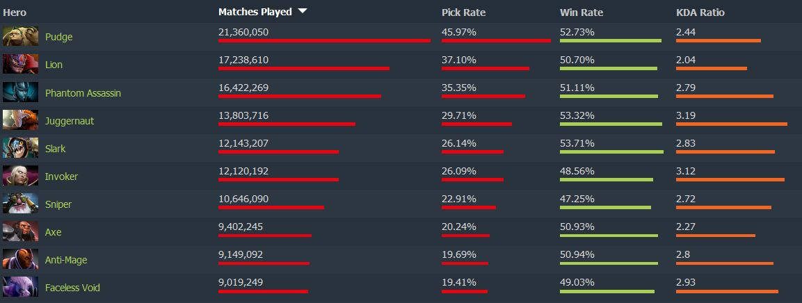 Pudge – самый любимый герой 2-го сезона Dota 2. Отрыв от Инвокера и PA огромный