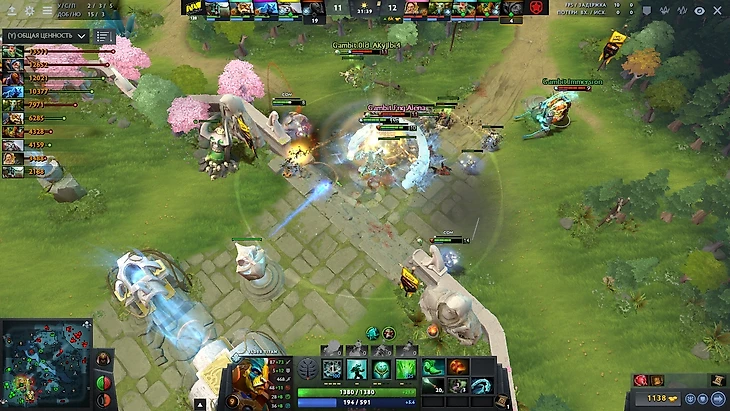 Однако начало для Gambit Esports не задалось. Не сказать, что Natus Vincere сразу обрели какое-то серьезное преимущество, но его было вполне достаточно, чтобы они чувствовали себя вполне комфортно на карте. Три раза умер СФ, фривольно чувствовал себя Crystallize, которому даже Тайд с Котлом толком помешать не смогли, недостаточно фарма получала Медуза, – все это вылилось в следующую таблицу нетворсов к 10 минуте.