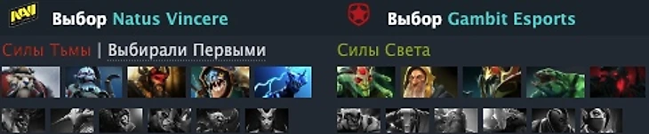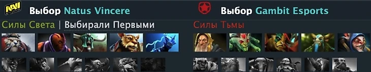 Сразу стоит отметить, что команды не сильно стремились подстраиваться друг под друга. По крайней мере по ощущениям складывалось впечатление, что одни берут своих героев, другие – своих, без оглядки на контрпики. Драфты по итогу оказались примерно равные, однако у Gambit он оказался немного сильнее. Во-первых, данные герои лучше чувствуют себя в драках 5 на 5 ввиду массовых дизейблов и АОЕ урона. Во-вторых, на мой взгляд, в лейте Медуза обладает более мощным потенциалом, нежели Сларк ввиду того, что она и ренджовая, и бить может сразу несколько целей, ввиду чего 1 позиции Na’Vi будет тяжело до нее добираться.