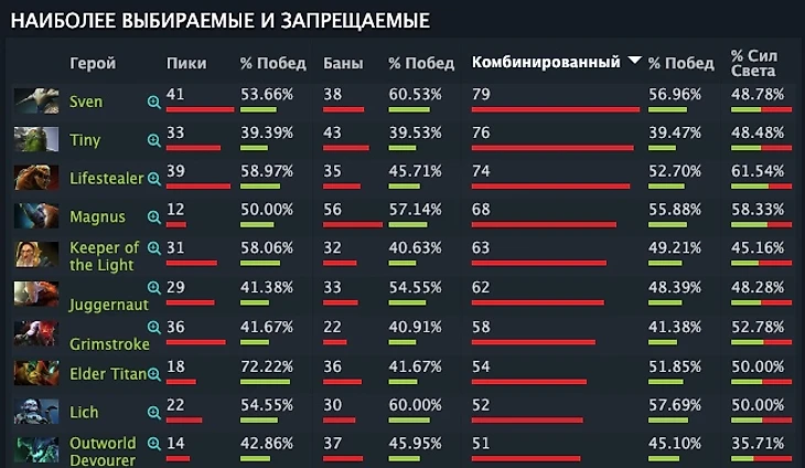 Начнем, как и в предыдущий раз, с десятки наиболее часто появляющихся в драфтах героев, хотя, интересовать нас будут конкретные персонажи.