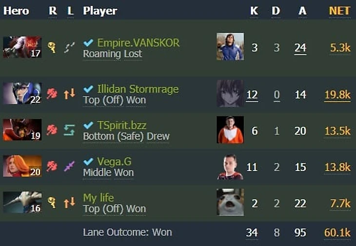 1. Если Illidan играет не на Разоре, то 20 минут игра идет 4х5. Да, Илья исполняет совсем не так, как на стриме. Посмотрите на KDA Иллидана в этом составе – у него нет проигранных игр не на Разоре с соотношением убийства/смерти выше единицы.