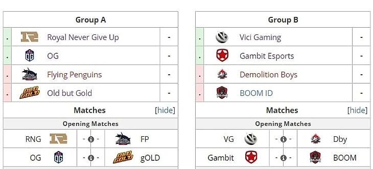 Две группы по четыре команды сыграют в GSL-формате. Первые две команды проходят в плей-офф, а третье и четвертое место покидают турнир;