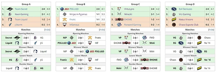 В этом сезоне у китайских команд серьезные проблемы – их максимальное достижение на мейджорах – топ-4. Однако в групповом этапе они отлично себя показали: VG прошла в плей-офф со второго места, PSG.LGD даже с заменой заняла в своей группе первое, а Keen Gaming сенсационно обыграла Liquid 2:0 и отправила их в нижнюю сетку.
