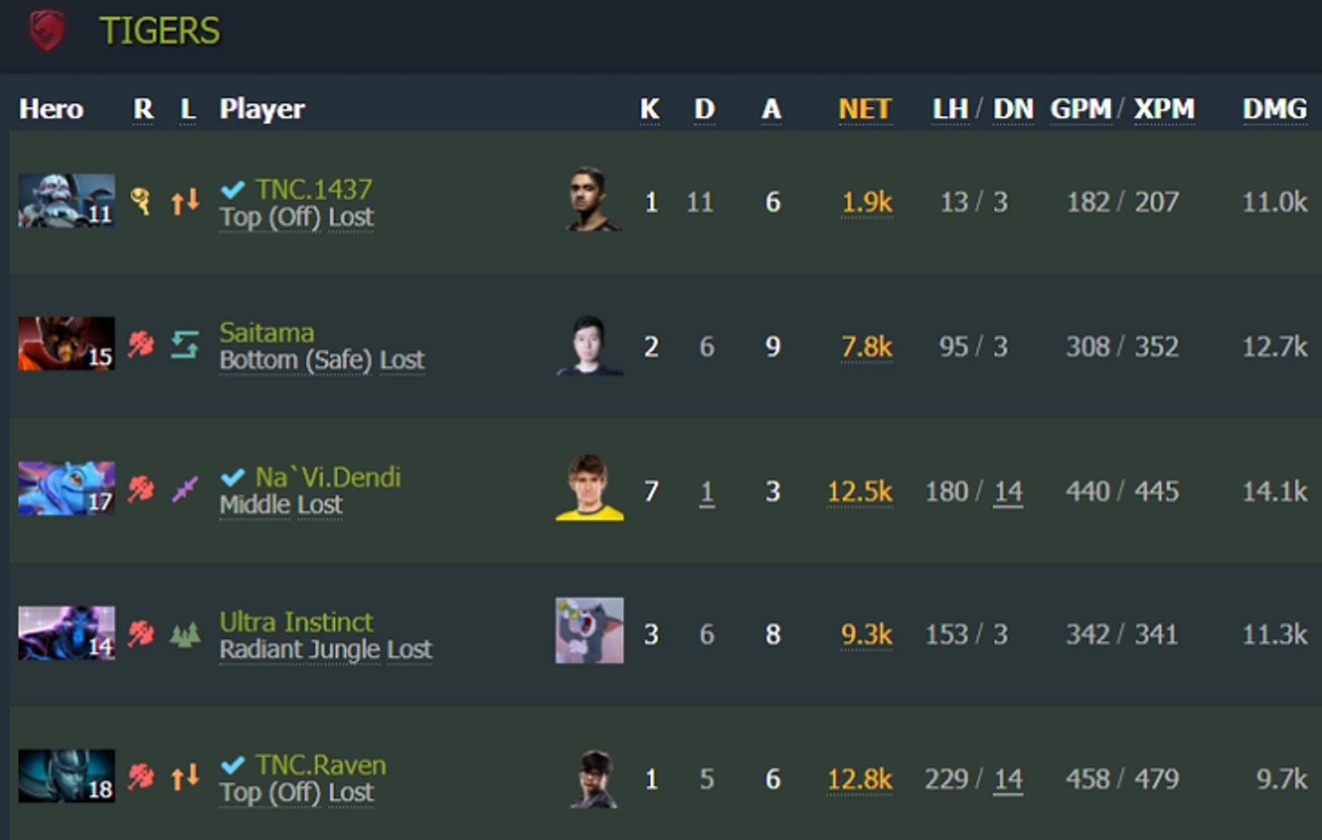 Без хорошей инициации от Dendi Тиграм нечего было ловить на этой карте. Dendi ни разу не врывался первым в кор-героя в командных тимфайтах.