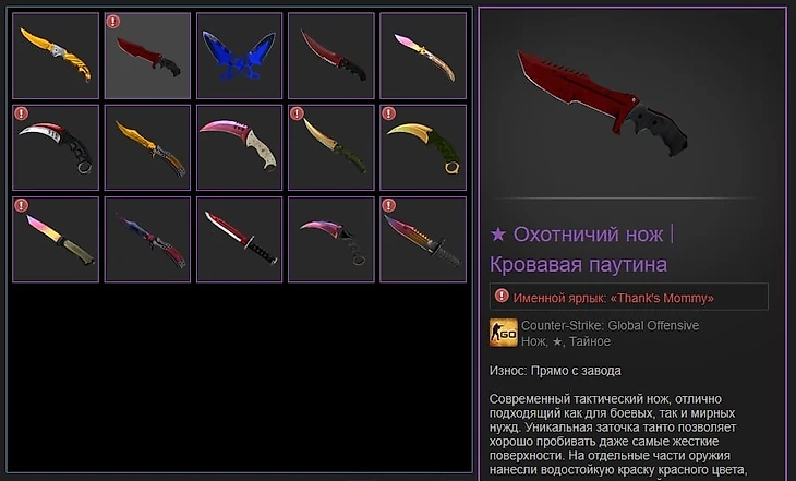 Инвентарь CS еще дороже. Всего у Головина 15 дорогих ножей и 7 AWP. Многие его вещи имеют собственные названия – Golova17 или Kaltan17.