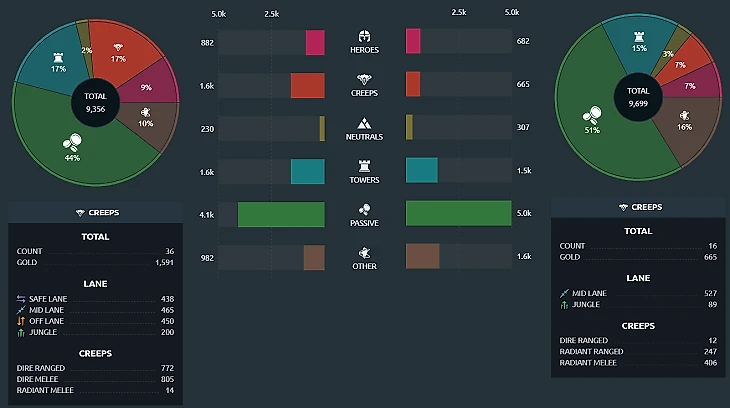 Sonneiko на тысячу золота перефармил Мишу только за счет крипов с линии. Если смотреть статистику турнира, то видно, что у Миши ниже GPM, среднее количество добитых крипов при равном KDA.