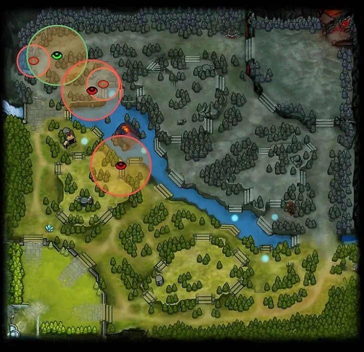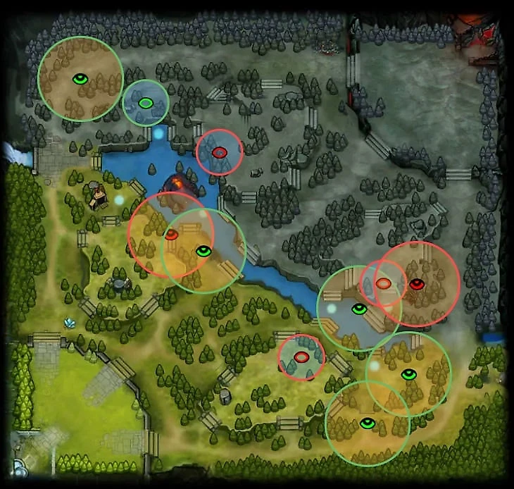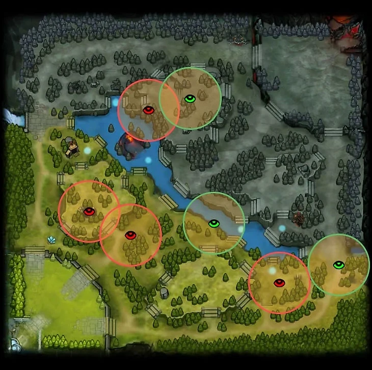 Расстановка вардов на первой карте заслуживает отдельного абзаца. Главная задача вардов Нотейла на пятой минуте – защитить две линии, на которых его нет.