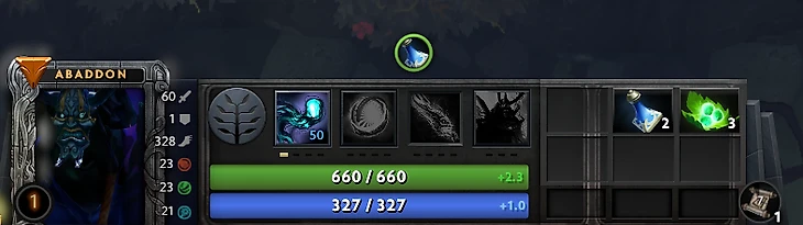 Но как же ему повезло! У Нотейла оставалась одна единица здоровья! В этом моменте видно, как напрашивается нерф скорости Абаддона в следующем патче: без сапога у героя 328 МС. Поэтому N0tail не спешил с покупкой Boots of Speed, и вот почему пеньки Фуриона не добили его в этом моменте.