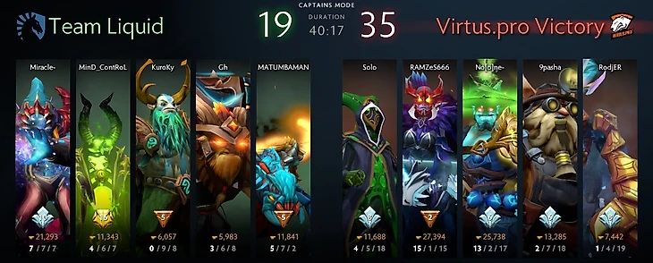 И Virtus.pro правда отнеслись к турниру ответственно: как к серьезной, ключевой тренировке. Мы увидели несколько нетипичных для меты героев – Лон Друида, Инвокера, Аппарата в миде, и совсем неожиданного для VP Эмбера в легкой. Увидели Абаддона в первом матче на турнире вообще (про него забыли даже аналитики). Увидели Дровку со Штормом от VP – и та игра закончилась вот так.