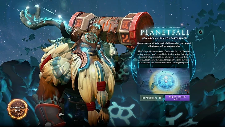 Этой ночью в клиент игры была добавлена особая награда за достижение 365-го уровня – аркана Planetfall на Earthshaker.