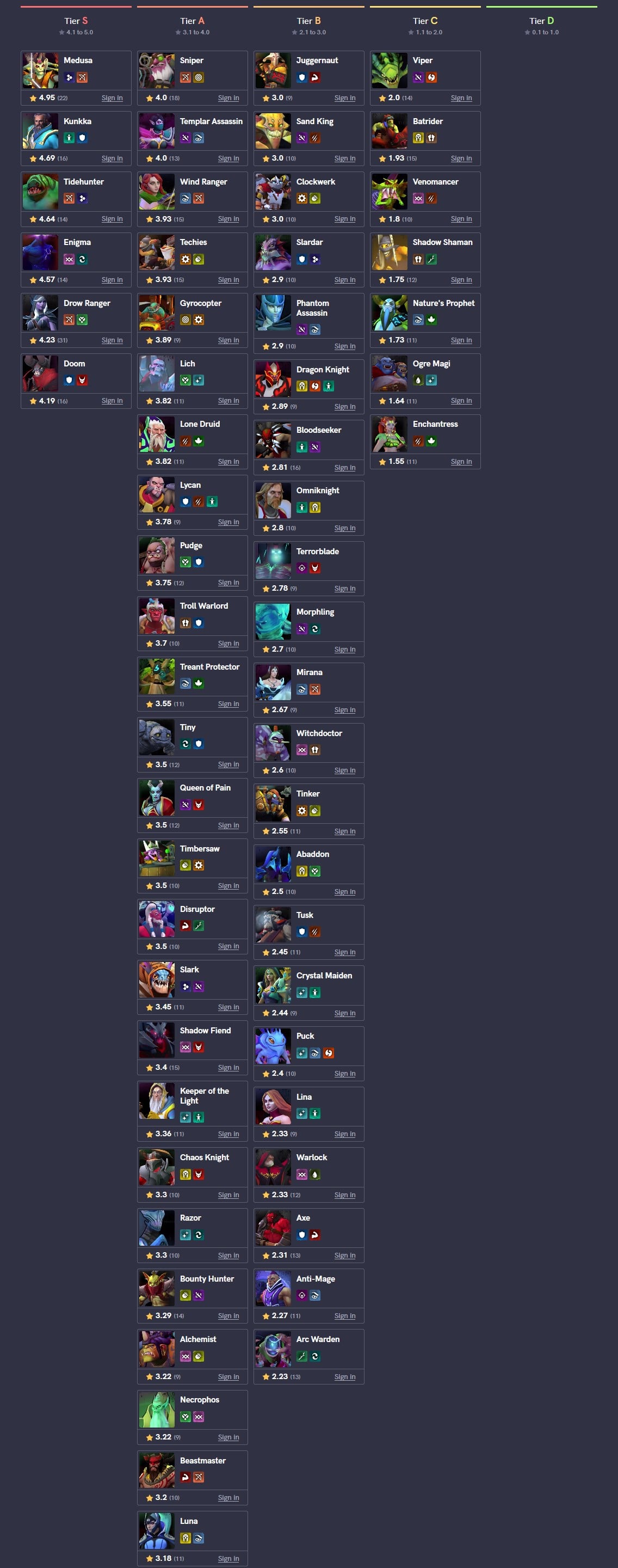 После патча на Underlords.gg открыли раздел с тир-листом – все игроки могут оценить героев, они распределяются по дивизионам в зависимости от среднего рейтинга.