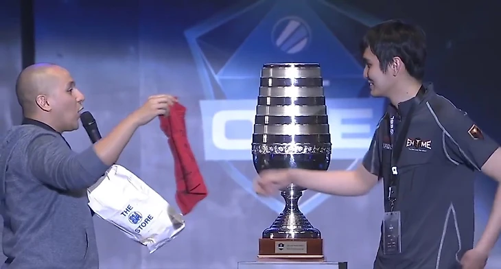 Шоу-матч на турнире с призовым фондом в почти 3 миллиона долларов. Dendi при полном зрительском зале ставит игру на паузу, чтобы поиздеваться над своим тиммейтом – который оказался в другой команде всех звезд.