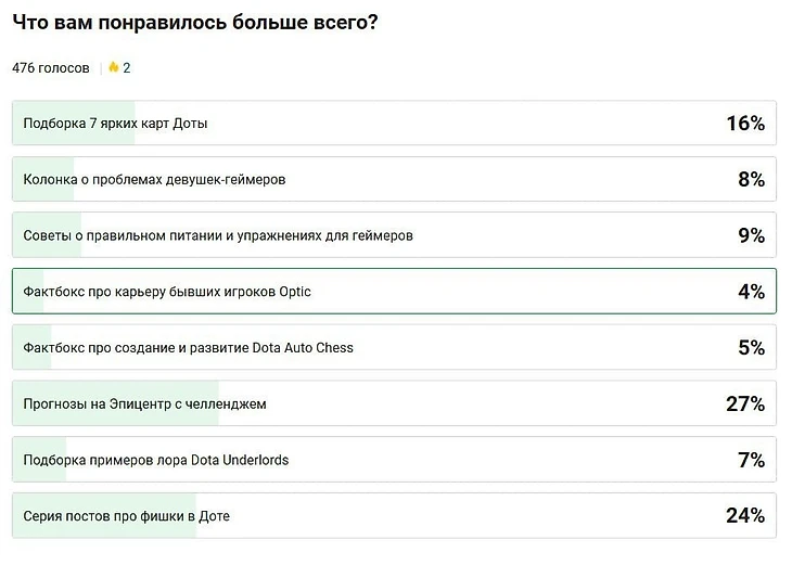 На этой неделе вы выбрали победителем блог «Хороший лед рассуждает» с постом «Наш блогер придумал челлендж: делает прогнозы на Эпицентр и обещает отжиматься за ошибки»: