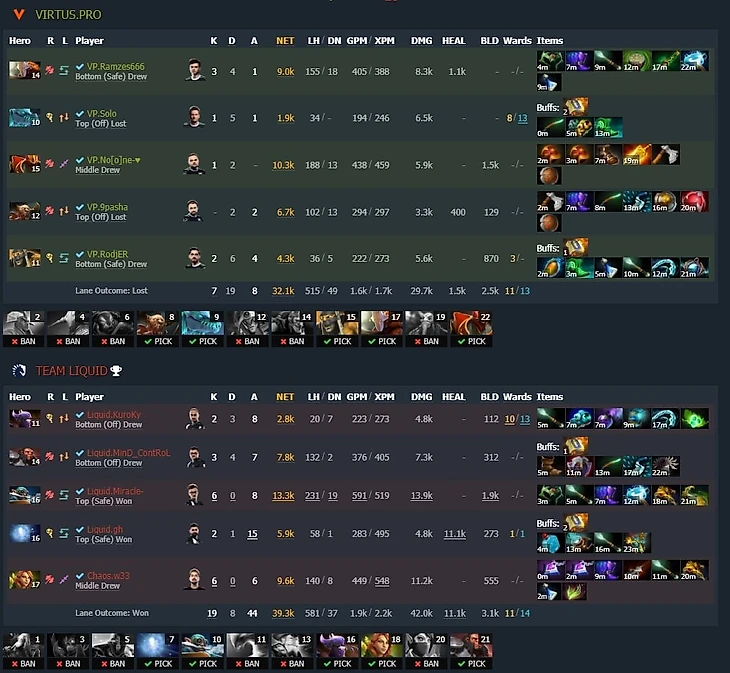 Пока OG и Alliance играют в Rat Doto и цепляются за любые возможности в проигрываемых играх, VP сдается на 23 минуте со стоящими тир-2 башнями: это случилось на первой карте против Liquid.