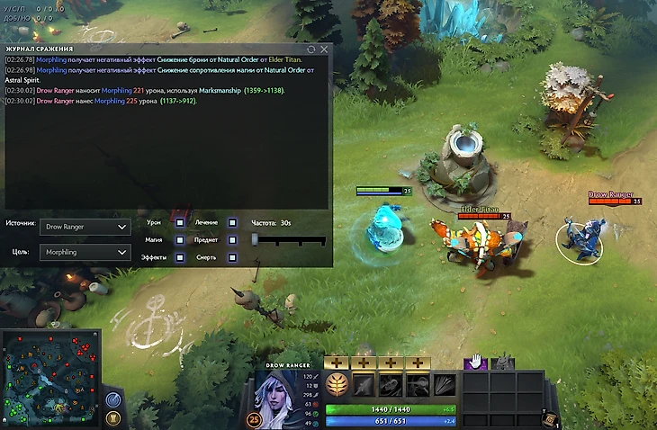 Аналогично работает и с аурой Титана. Если Дровка бьет цель, на которую действует Natural Order, то эта цель получит двойной дебафф к броне. Было 50 брони, а стало -50!