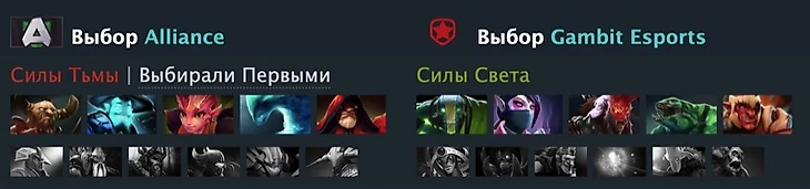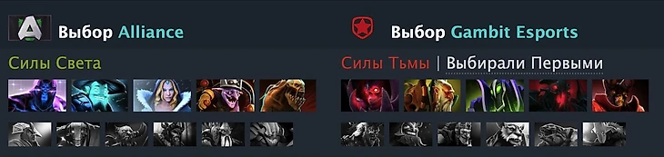 На стадии драфта уже стало странно, что Фнг отдал Шторма. Против Нипов Артем забанил всех ключевых героев соперника, и с Альянсами можно было сделать то же самое. Вряд ли стоило рассчитывать, что в столь принципиальном матче Insania упустит возможность взять своему мидеру одного из его лучших героев, тем более что Шторм в первой стадии для Альянс – явление нередкое. Однако, в целом, у драфтов обеих команд присутствовала одна особенность, а именно – зависимость от хорошего старта. Альянсам это позволило бы убивать всю карту через Инфест-бомбу при участии Тимбера/Шторм Спирита. Гамбиты же сразу могли бы перейти в пуш и победить по похожей схеме, как они победили Нипов.