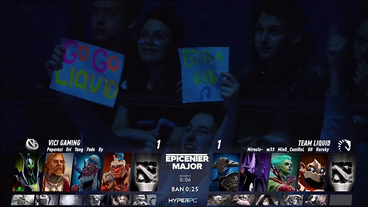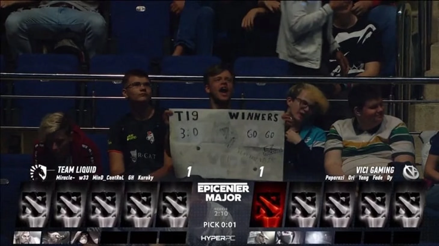 После поражения Virtus.pro зал продолжил поддерживать финалистов. Скандирования «Let’s go Liquid!» и «Vici Gaming!» шли одно за другим.