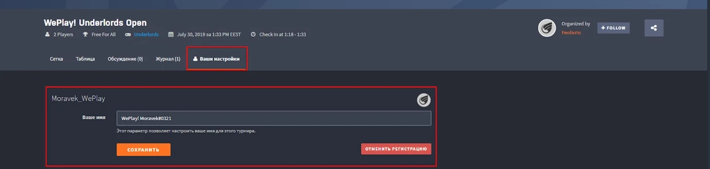 Для регистрации используется два инструмента: платформа Challonge.com и Discord-канал WePlay!
