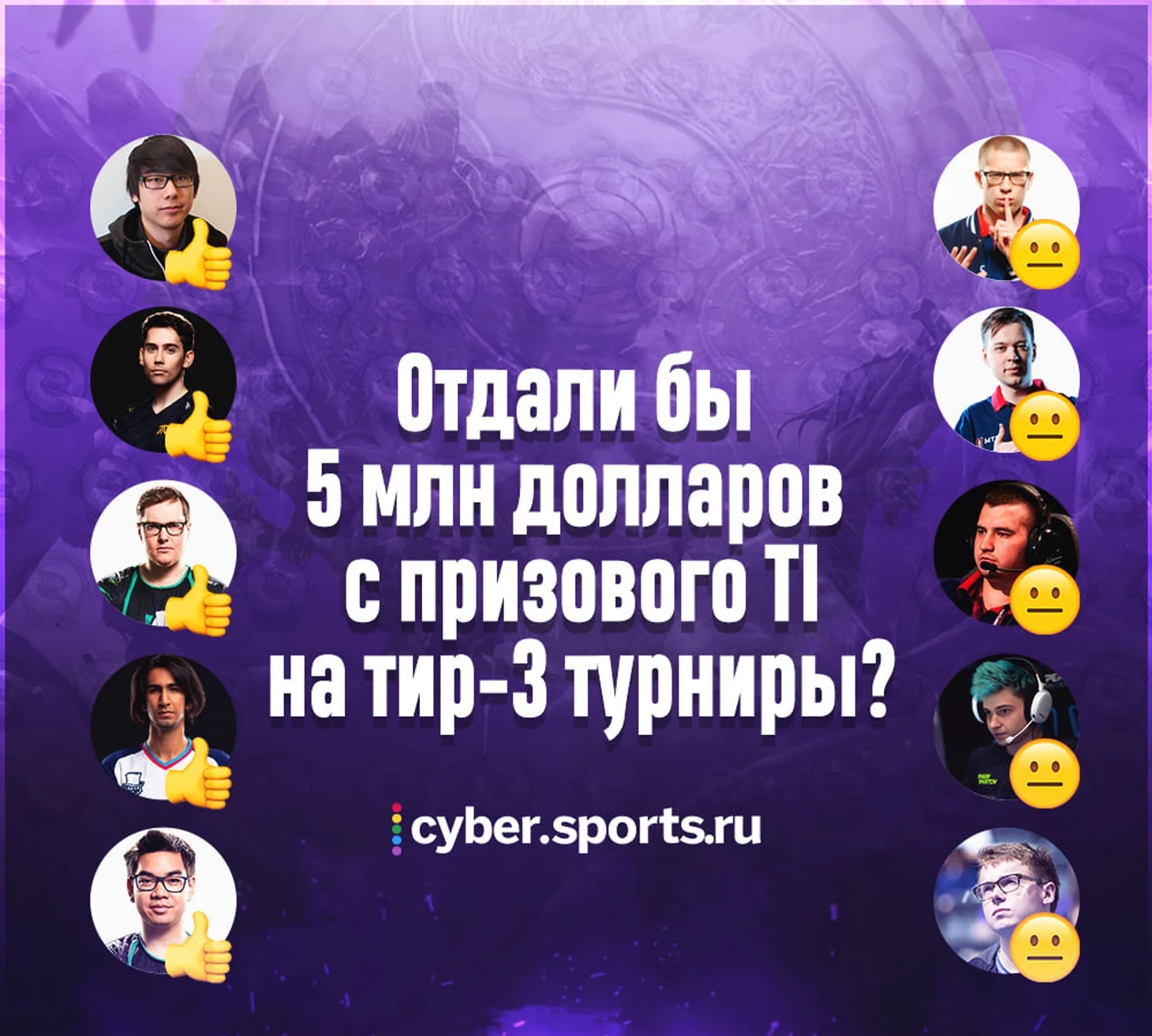 – Это было бы круто! Потому что в топовой доте очень много денег, и таким образом мы бы сделали экосистему доты гораздо лучше. Эти пять миллионов могли бы изменить очень многое. Если бы мы подняли призовые фонды обычных турниров или квалификаций, то это было бы круто.