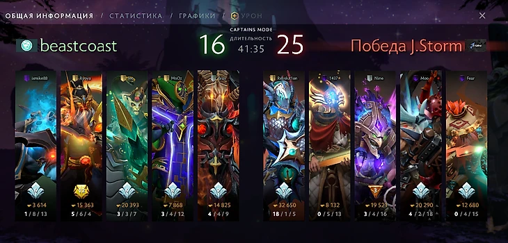 Вторая карта закончилась буднично. J.Storm опять пикнули очень плотных героев на каждую линию, забрали Рошана и спокойно за 30 минут закончили игру.