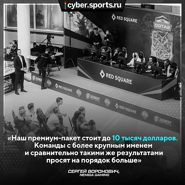 «В социальных сетях наши охваты достигают 600 тысяч уникальных посетителей в месяц, но не будем забывать, что это лишь вершина айсберга. Большой пласт просмотров приходится на турниры, где участвует наша команда. При этом партнерам мы обходимся довольно дешево, — поясняет Сергей Воронович, генеральный директор Nemiga Gaming. — Наш премиум-пакет стоит до $10 тысяч. И это с неймингами, прероллами, выпуском большого количества видео контента, а также активностями, которые мы можем проводить совместно с фанатами и спонсорами. Для больших компаний это небольшие деньги. Команды с более крупным именем и сравнительно такими же результатами просят на порядок больше».