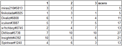 До bo3-финала дошли miras210, finikolada, Divaliz, icuken, w1tchboy, DkNova, Insighttt и Spiritwar. Первое место занял DkNova – топ-2 предыдущего турнира – и Insighttt, они получают по подарочной карте Steam на 750 рублей.