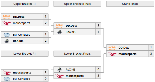 К сожалению, на этом победы Роксов на отборе закончились. EG тоже не пробились через квалификацию, на TI3 вышли Mousesports с Блэком и Синдереном, а в Вайлдкарде сыграли DD.Dota (позже ее подписала Quantic) с Сайлентом, Гоблаком и Себом.