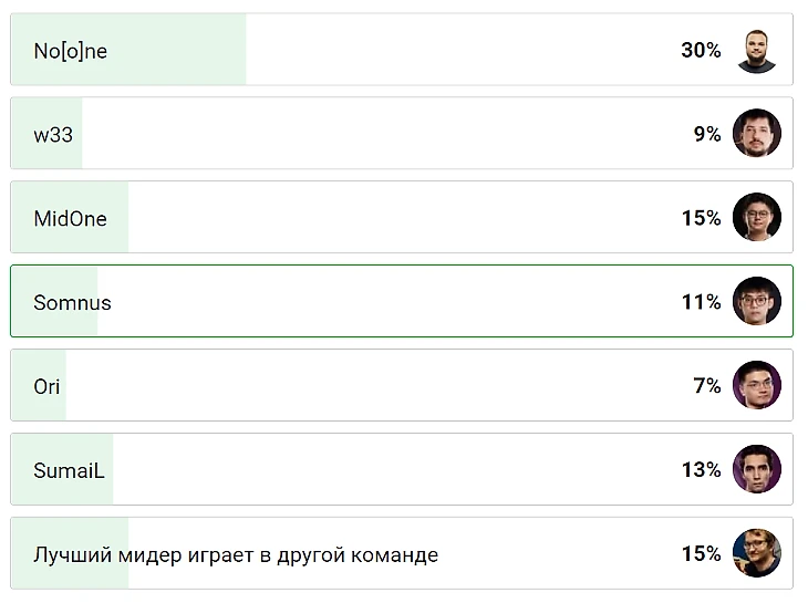 Мы проводили голосование с целью выявить лучших игроков на своих позициях. Если первое место Нуна среди мидеров на русскоязычном сайте было предсказуемо, то серебро МидВана удивляет.